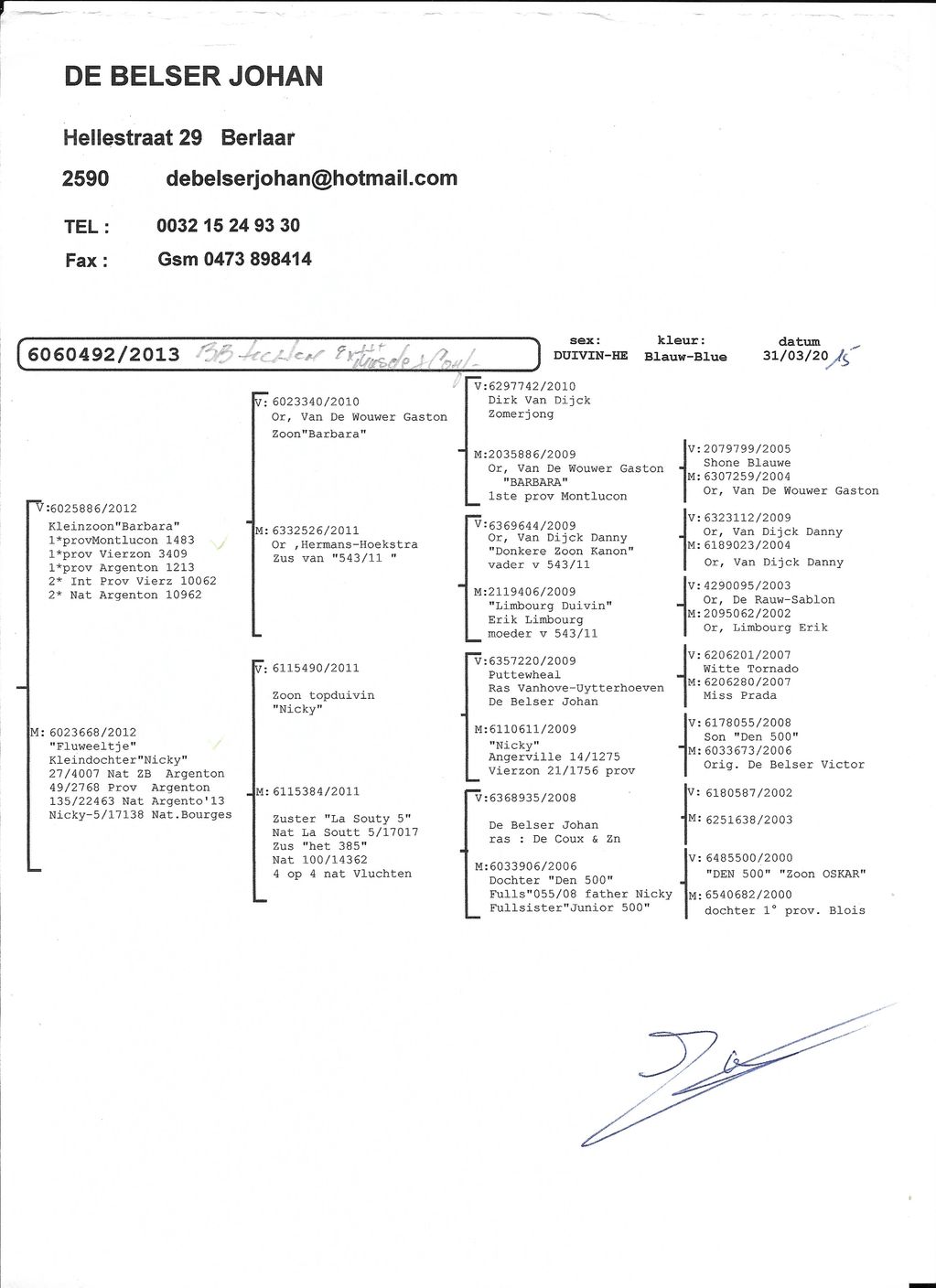 Super Breeder for Johan De Belser! 1st year sending babies out to One Loft Races in 2019 she bred 19 UVI 185 7th Average Speed Plymouth Peak Pro Challenge and 19 Uvi 184 13th Average Speed Plymouth Peak Pro Challenge. Super Hen!!!!