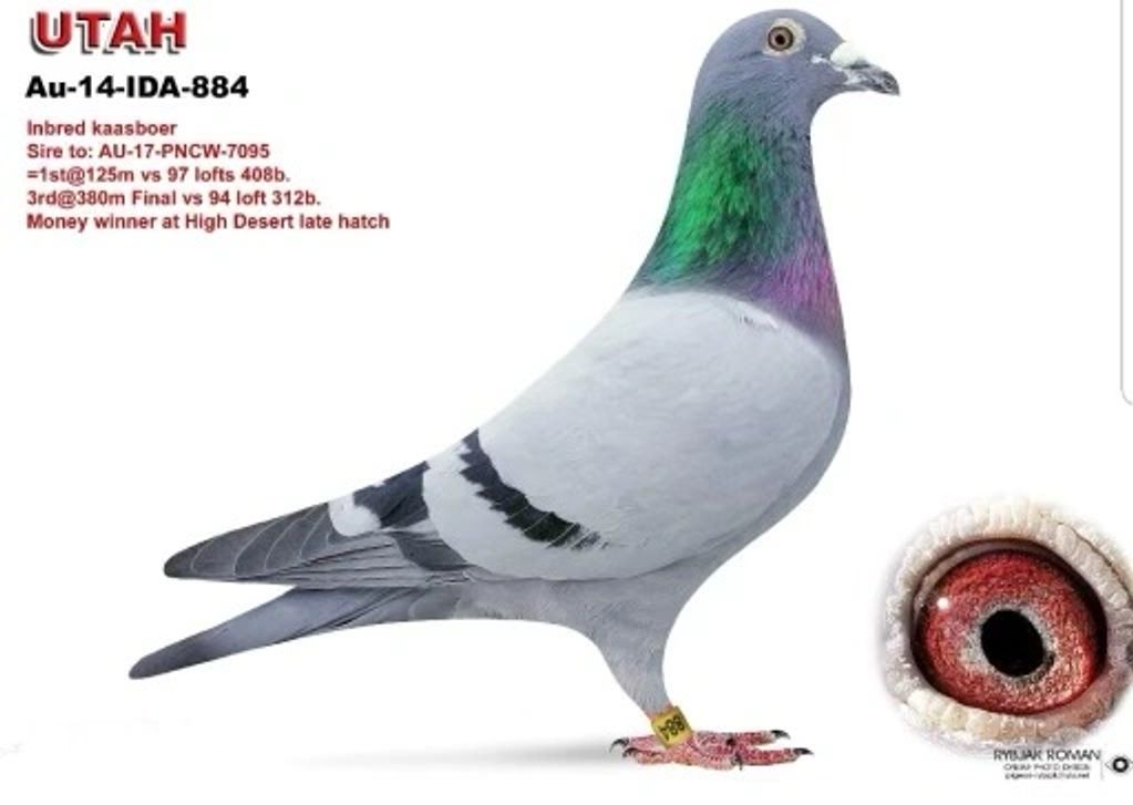 Inbred "Kaasboer" and super breeding cock being Sire to multiple One Loft Race Money Winners including PNWC 7095 3rd @ 380 miles High Desert Yearling Classic.