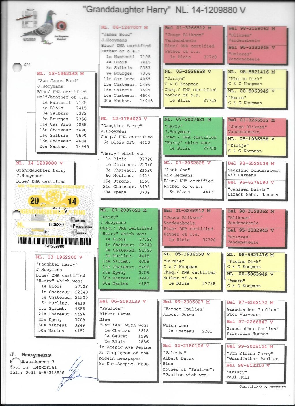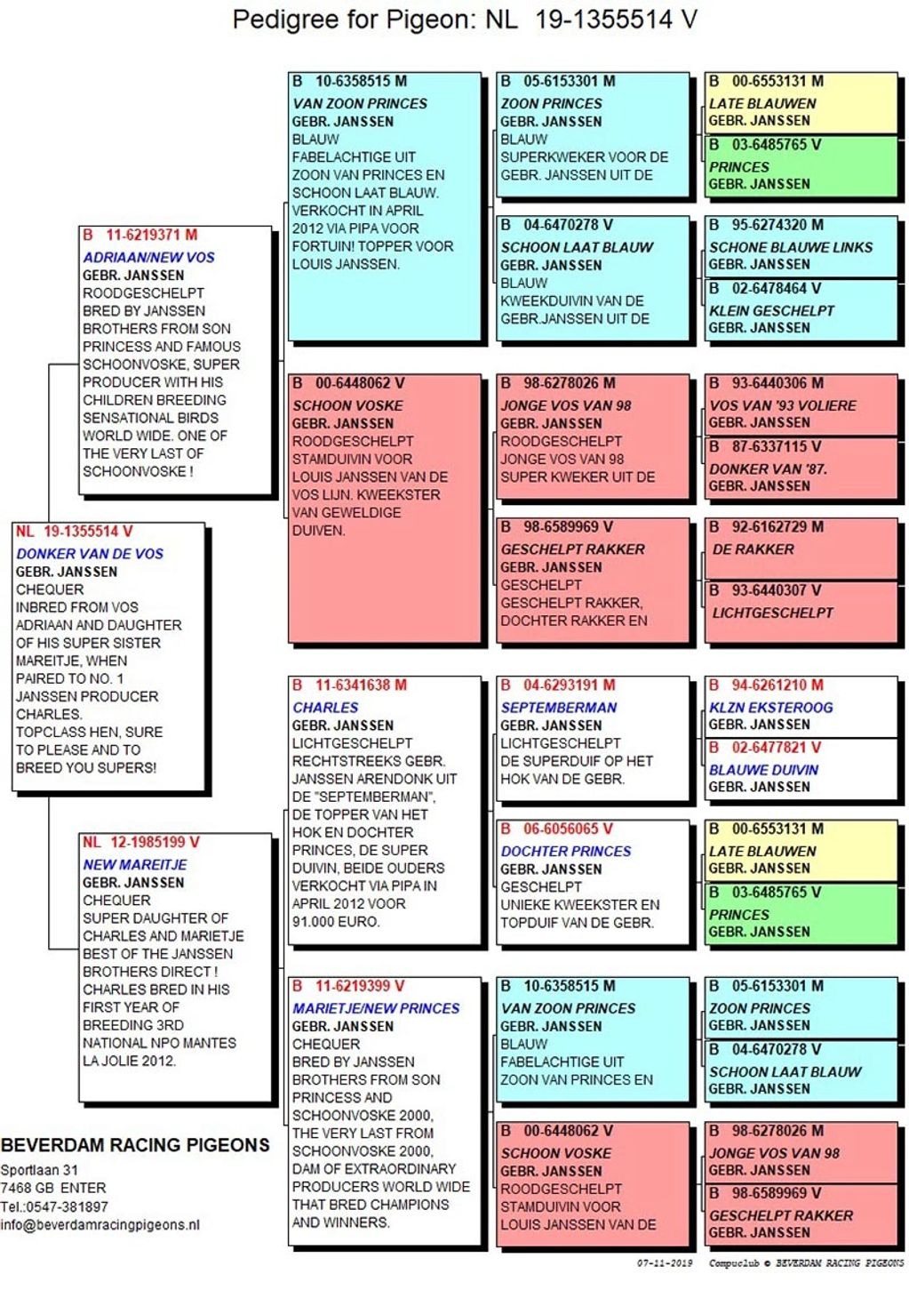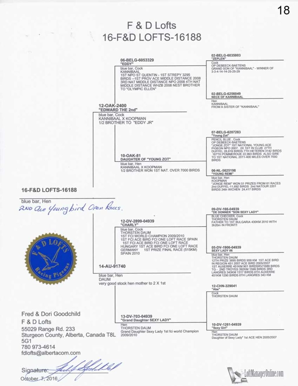 Mother to many winners and one loft winners for both Morningside racing loft and Dave Harrett. A Foundation Hen!! First raced for us 2019 UVI 280 1st 350 miles Concourse 354 birds.